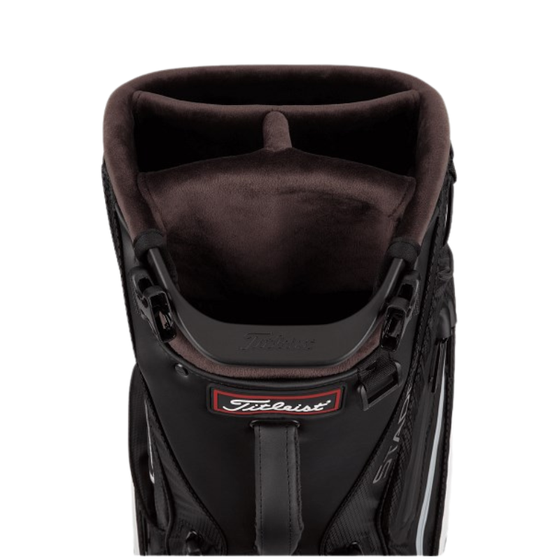 Denna golfbag från Titleist är inspirerad av deras Tour-bagar med många smarta funktioner. Titleist Premium Stand StaDry är tillverkad med Titleist vattentäta StaDry konstruktion med tejpade sömmar och vattentäta blixtlås. Golfbagen är utrustad med en klädficka i fullängd samt ytterligare 5 st fickor med dragkedjor.